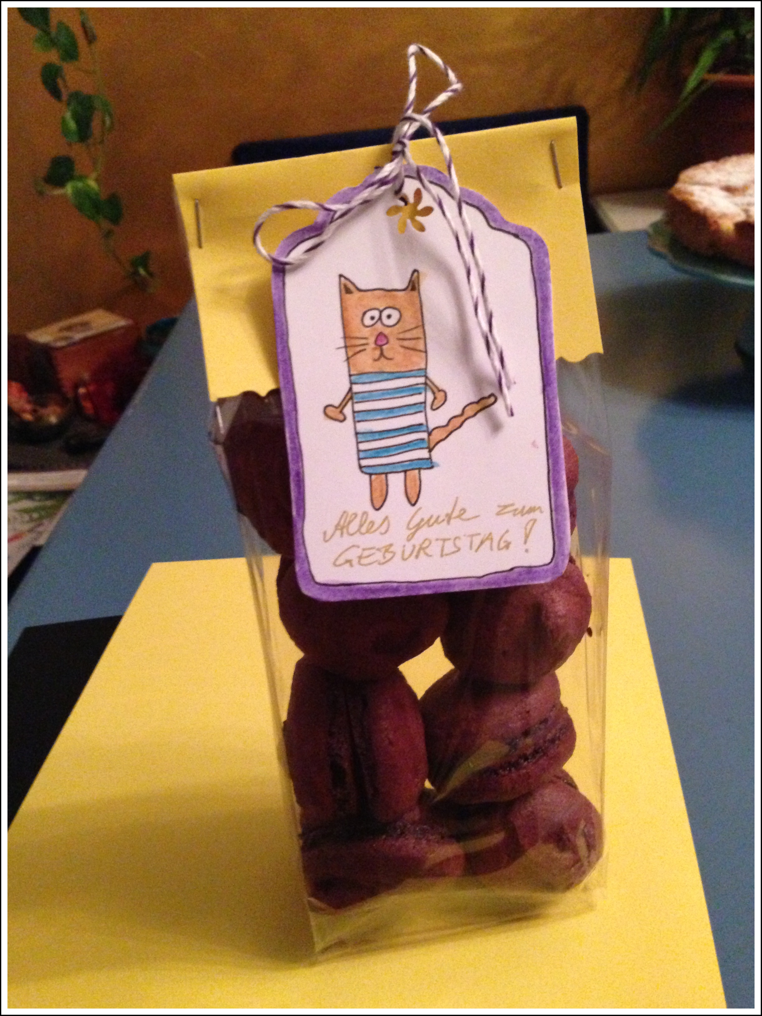 Heidelbeer-Macarons schön verpackt.