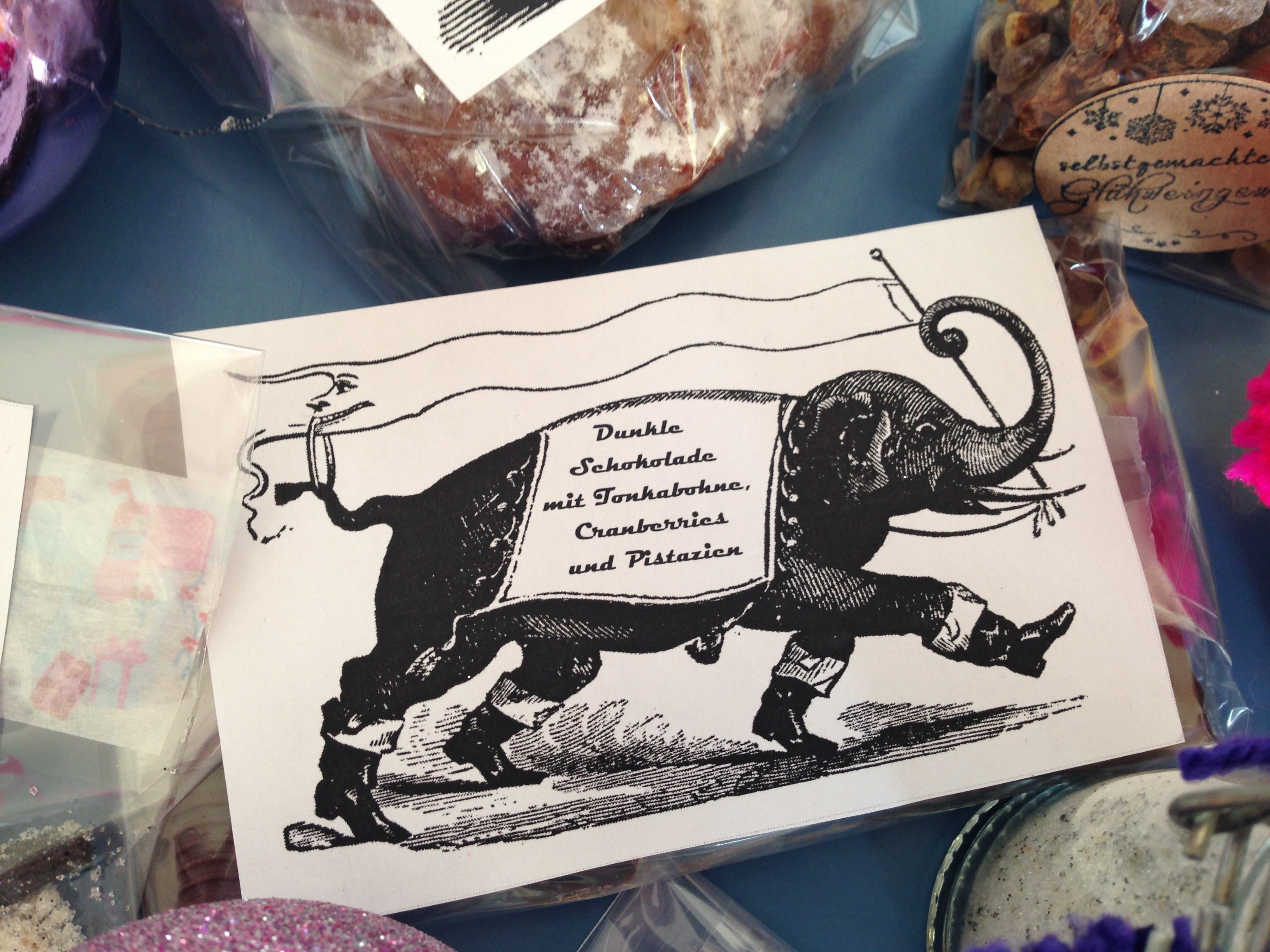 Die Schokolade fest werden lassen und dann aus der Form stürzen und nett verpacken. Auch hier habe ich wieder die Illustration aus dem Buch Frames verwendet.