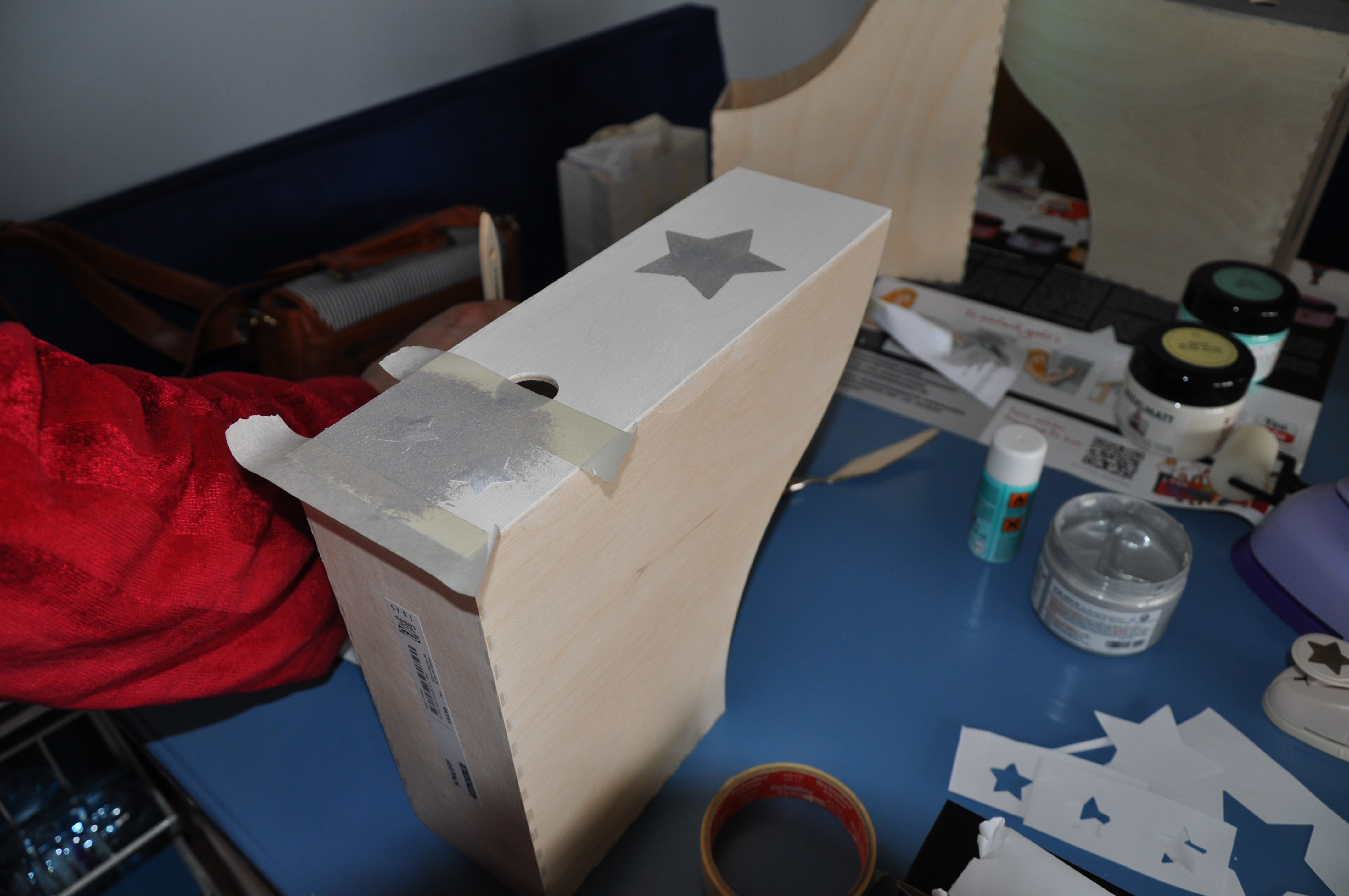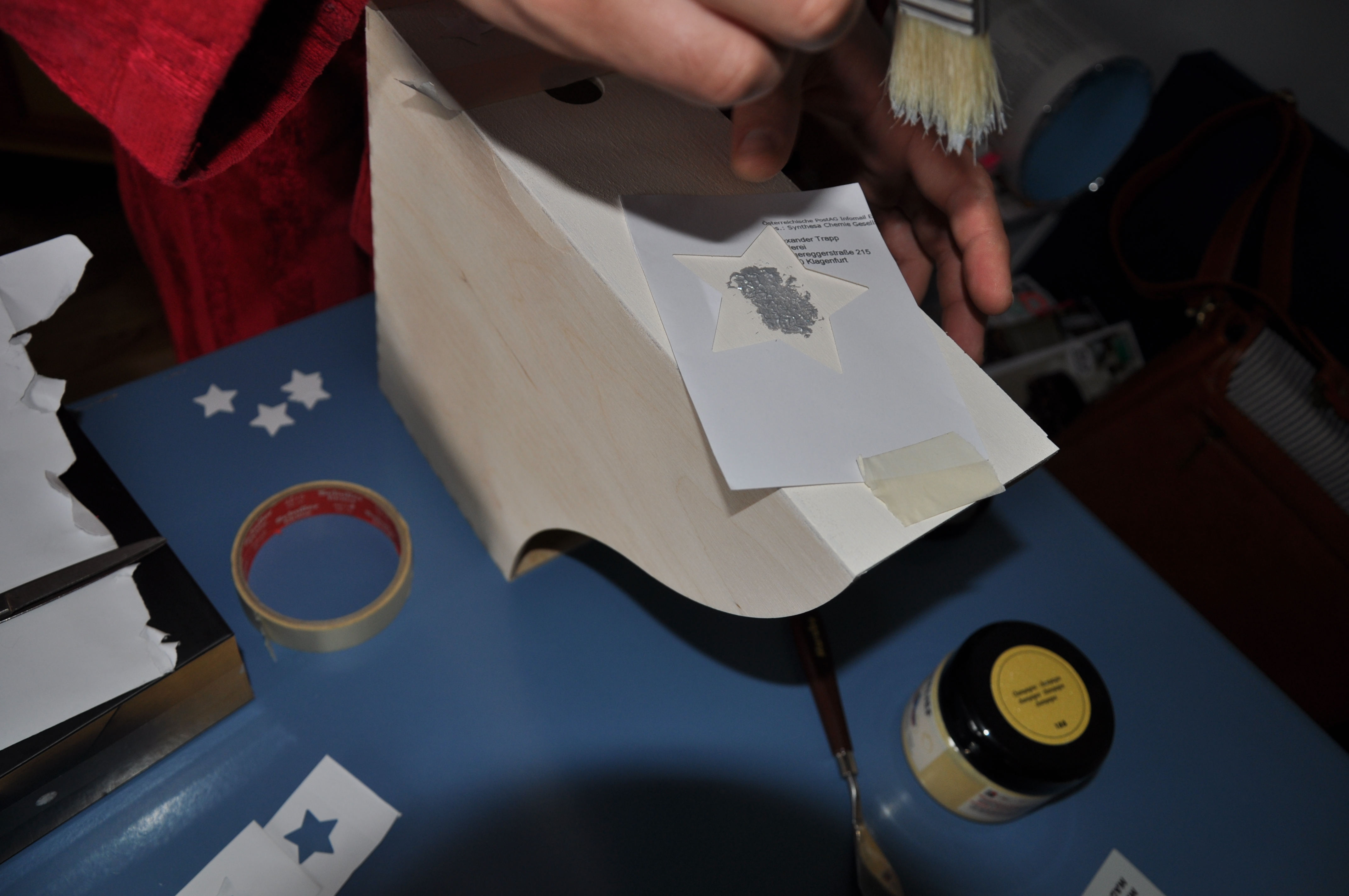 Wir haben die Schablonen mit etwas Abdeckband fixiert, wobei sie so klein waren, dass es auch mit der Hand ging.