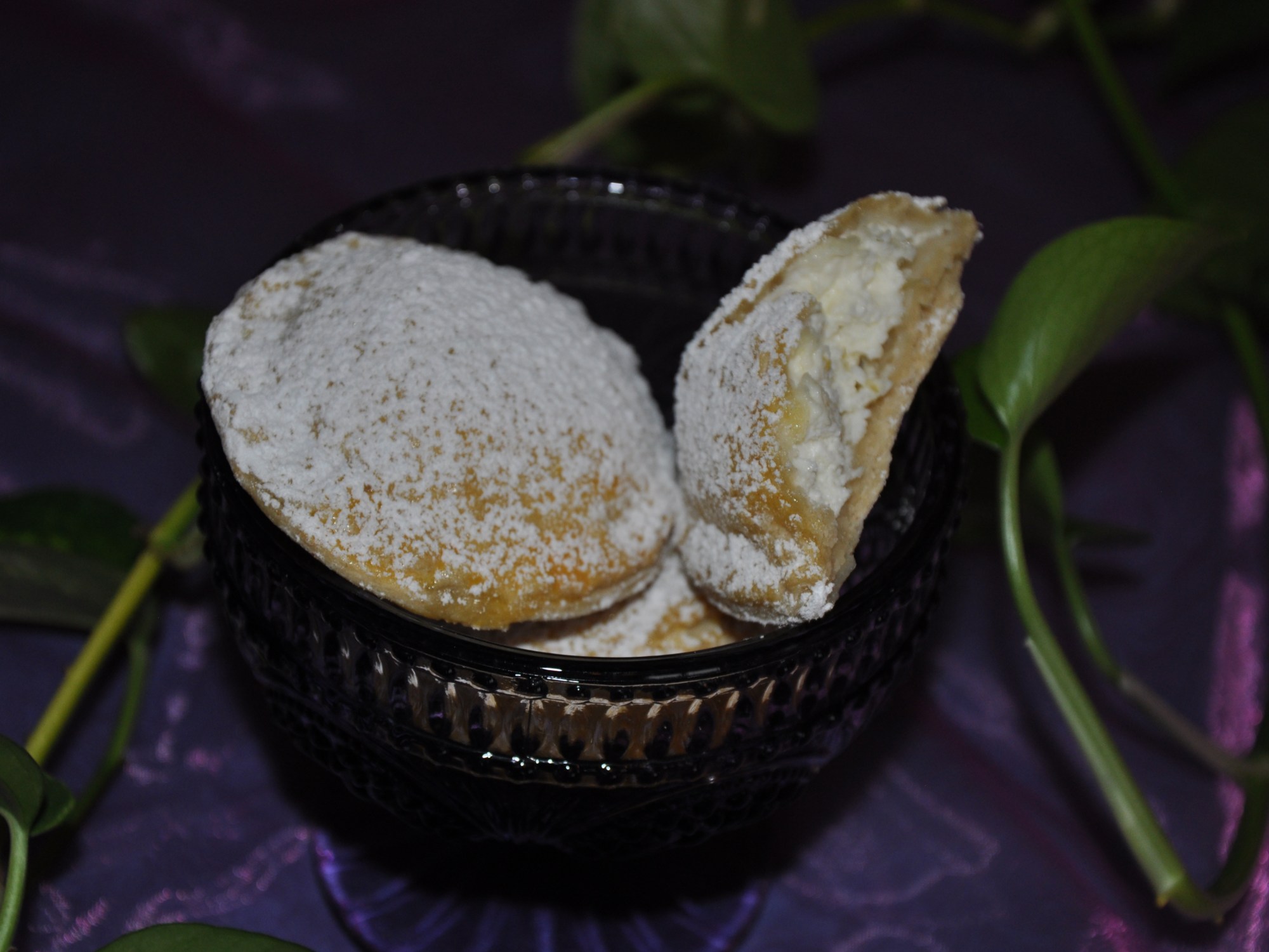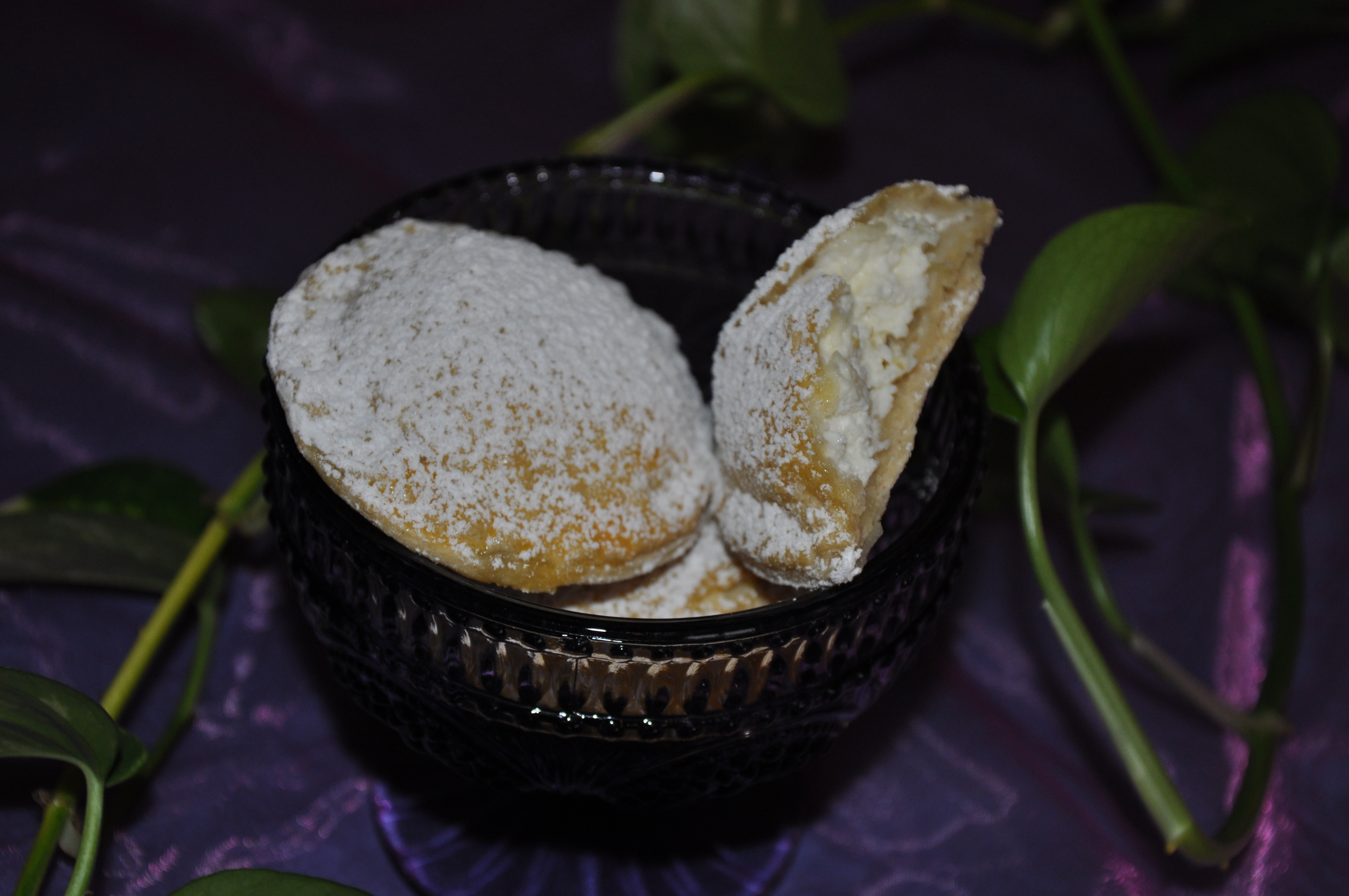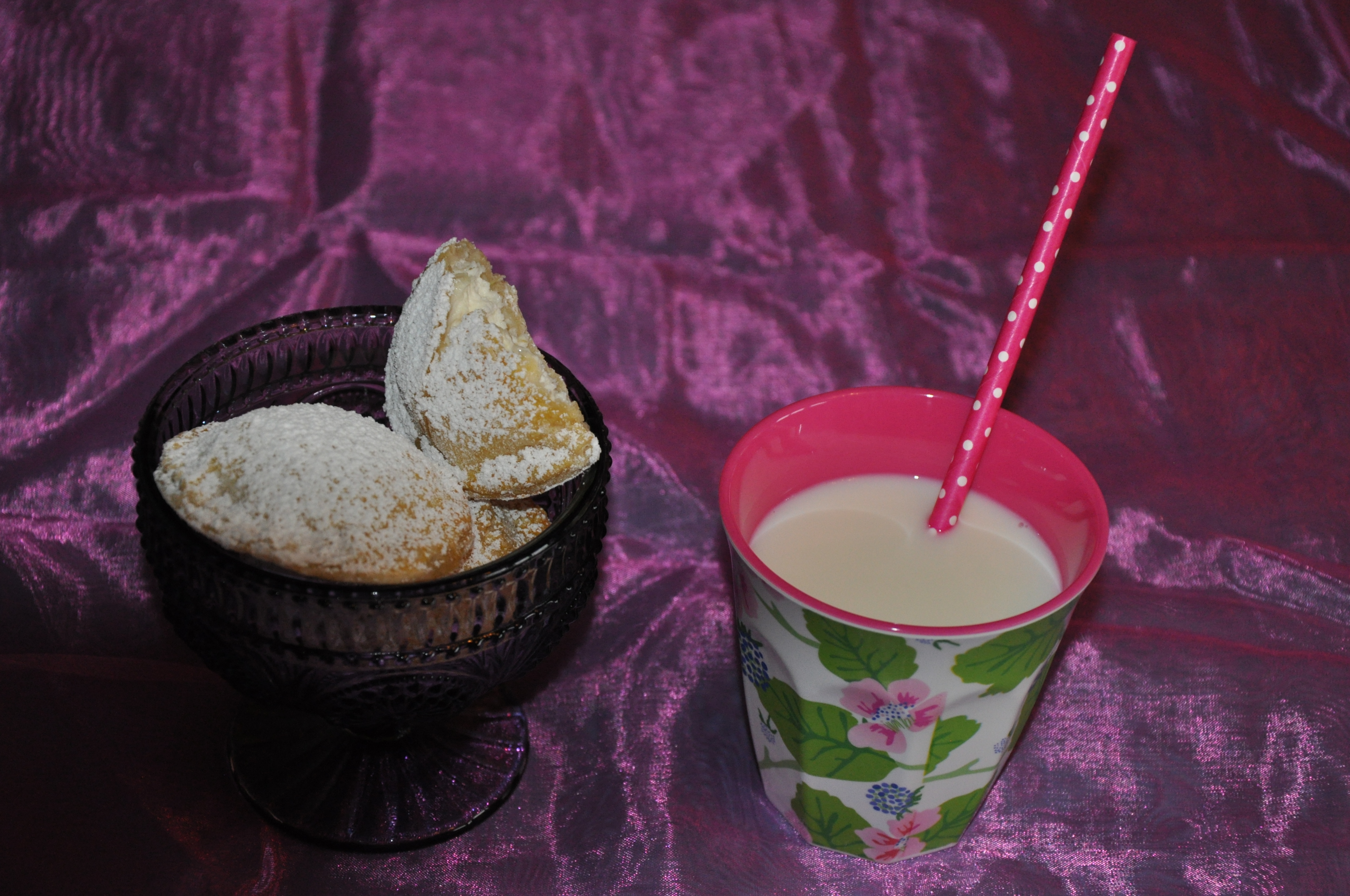 Im heißen Ofen die Taler rund 30 Minuten backen. Aus dem Ofen nehmen und etwas abkühlen lassen, danach mit Puderzucker bestreuen.