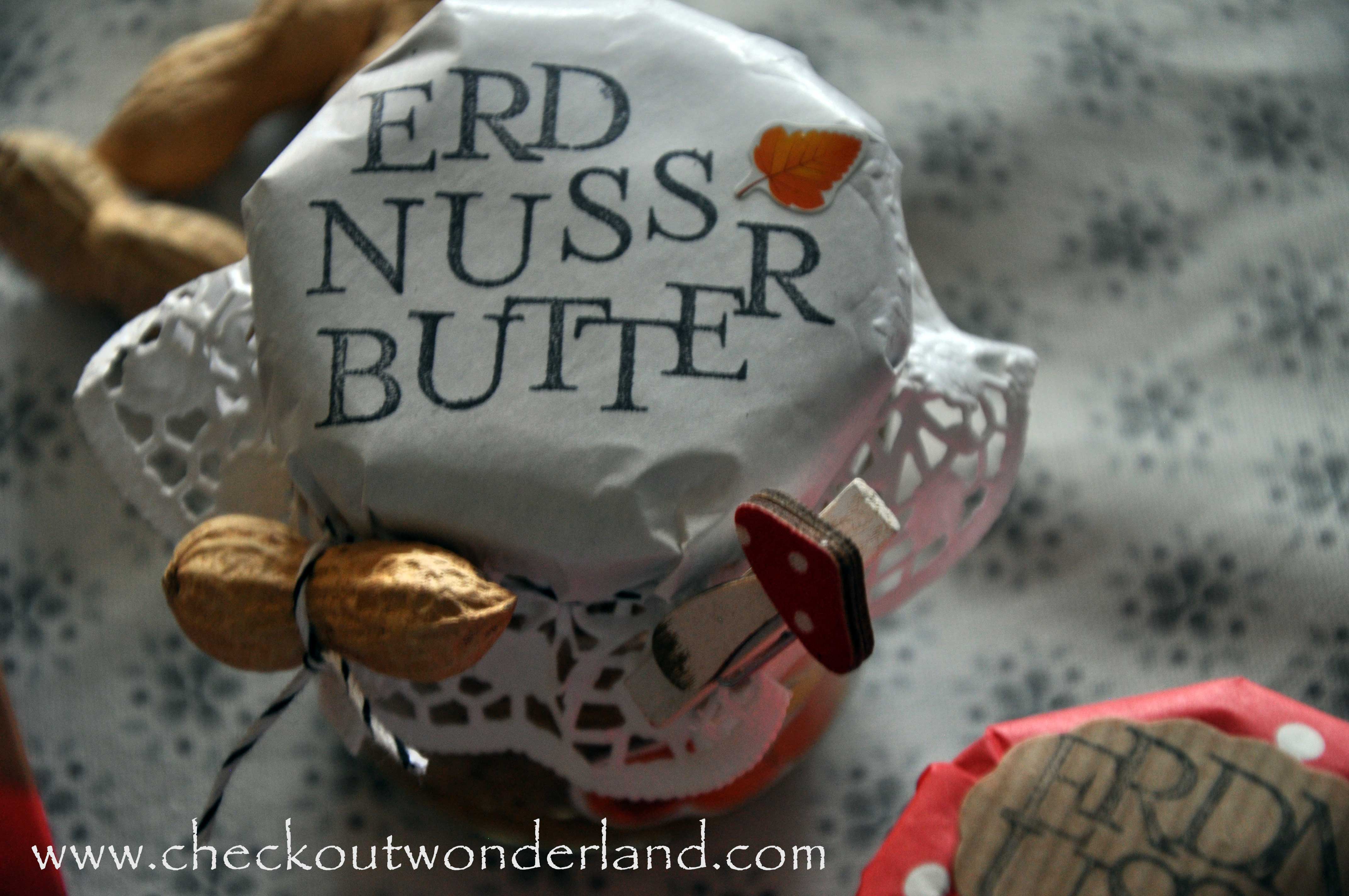 Tipp zum Verschenken: Da die Erdnusscreme etwas blass in der Farbe ist, darf es gern ein kräftig rotes Band zur festlichen Verzierung sein.