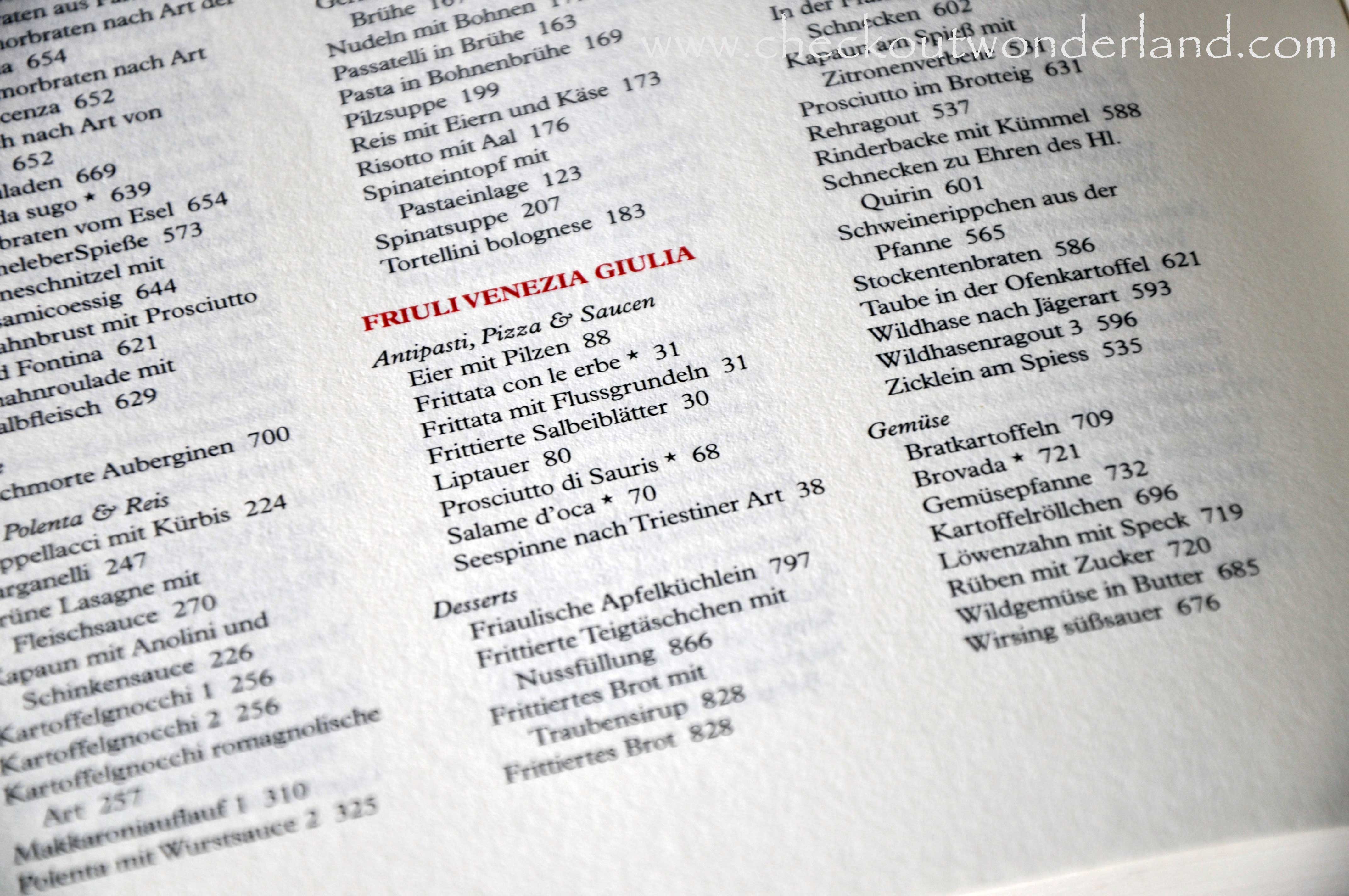 Bei 2.000 Rezepten bleibt nicht mehr viel Platz für Fotos, aber die Rezepte sind äußerst übersichtlich präsentiert. Und man sieht sofort aus welcher italienischen Region sie kommen. Die Rezepte sind kurz, aber präzise verfasst.